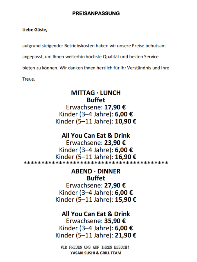 Es war wie immer sehr lecker. Alle Angestellten und der Chef super engagiert, fleißig und freundlich. Tolles Sushi, leckere warme Gerichte. Super Qualität. Kurze Wartezeiten, alles perfekt. Bis zum nächsten Mal 🫠